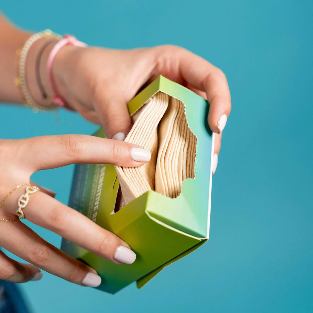 14 per box. Bamboo-based. Travel-friendly. Sensitive-skin friendly.