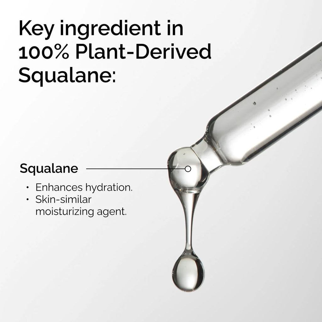 The Ordinary 100% Plant-Derived Squalane is a lightweight, non-comedogenic hydrating oil that helps to prevent moisture loss and support skin suppleness. Squalane is a saturated and stable hydrocarbon naturally found in the skin's sebum, making it highly compatible with all skin types, including sensitive and oily skin. This formula uses 100% pure, plant-based squalane derived from sugarcane, offering effective hydration without a greasy feel.