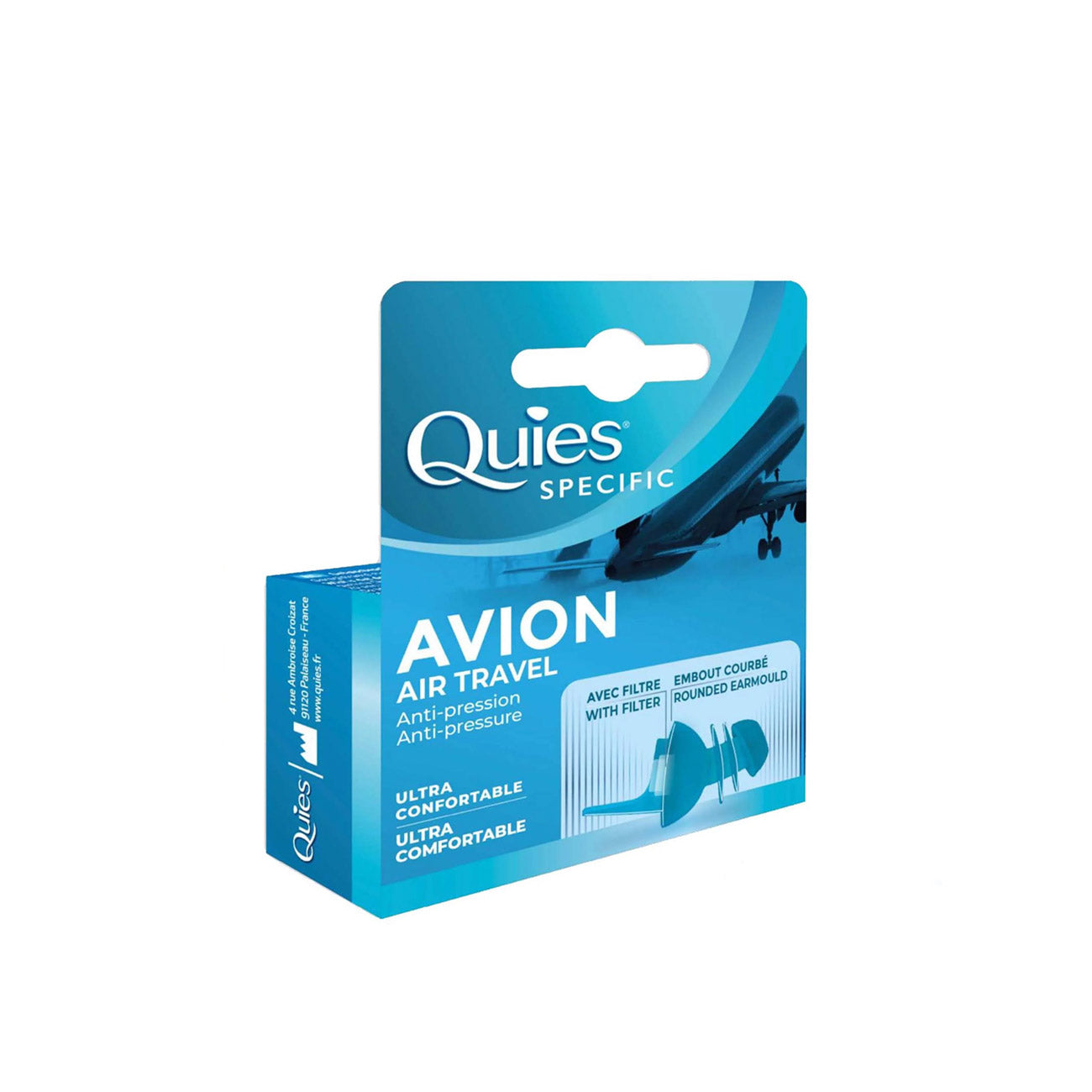 QUIES Air Travel are essential for sensitive ears on any plane or train journey or high-altitude trek. These earplugs are designed for people who suffer from ear pain during the pressure change in the airplane. Thanks to their ceramic filter, the QUIES Air Travel regulate the flow of air through the ear during pressure changes (during take-off and landing of an airplane or during Fahrt through a tunnel). The eardrum then gradually adapts to the pressure differences without suffering shock or deformation, avoiding pain. The plugs are reusable and come in a storage box to keep them dry and easy to transport.