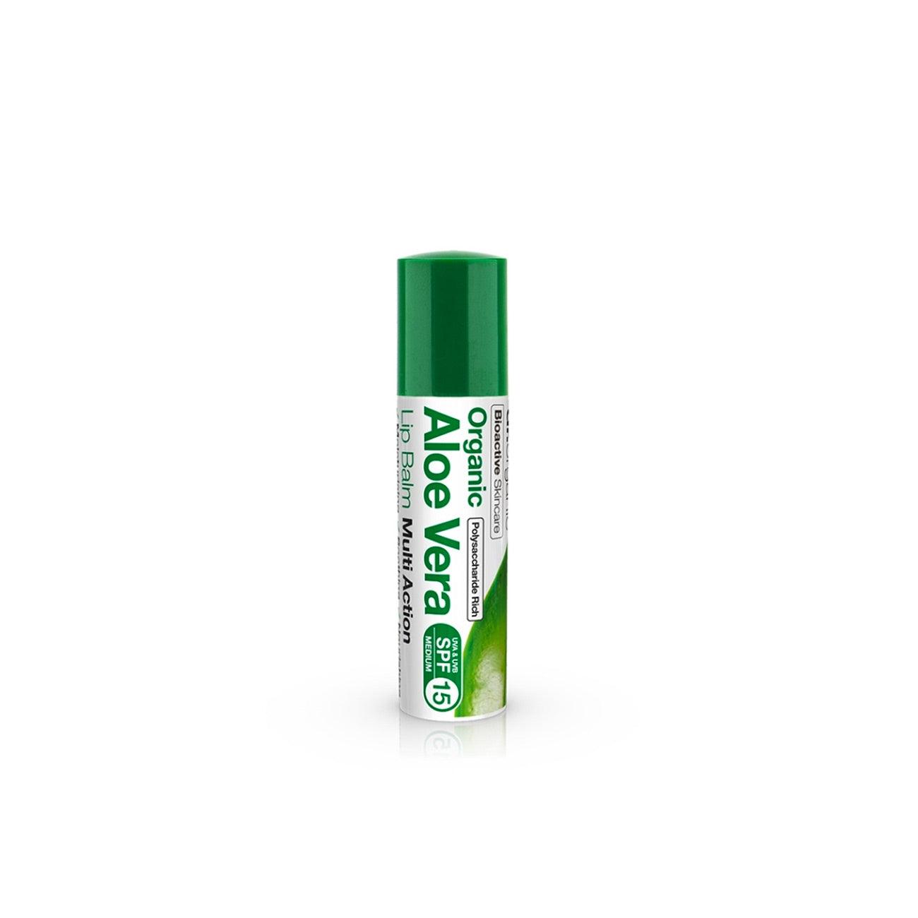 A multi-action SPF 15 neutral lip balm formulated with organic Aloe Vera, Vitamin E, shea butter and beeswax to protect, moisturize, and nourish dry lips.