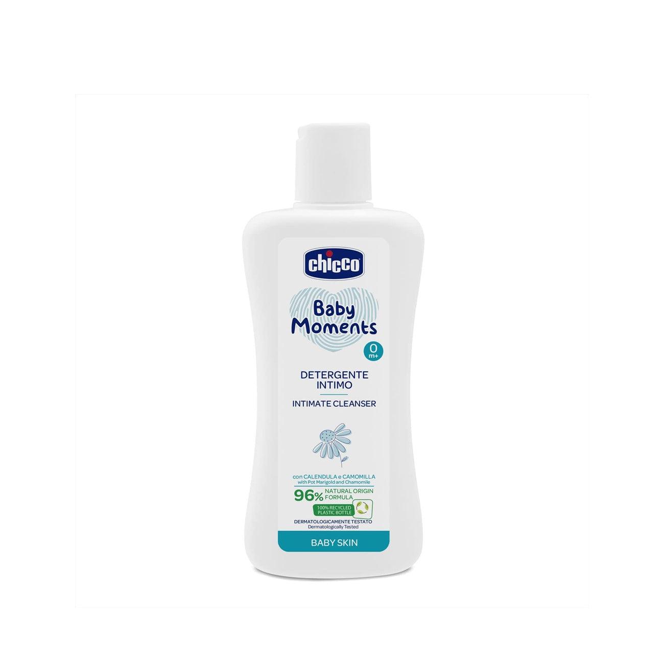 Formulated with 96% of naturally derived ingredients, the Intimate Cleanser of the Chicco Baby Moments line is enriched with calendula and chamomile extract.
