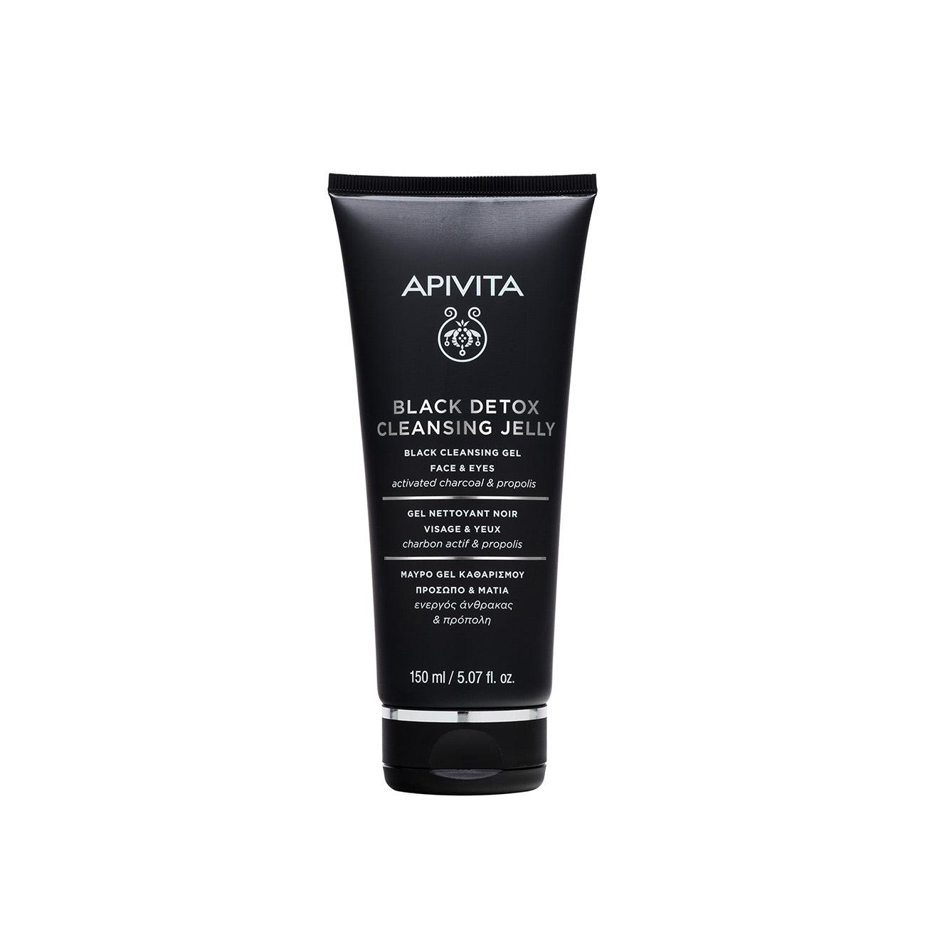 Black detox cleansing gel with activated charcoal and propolis to effectively cleanses the face and eyes without causing dryness.