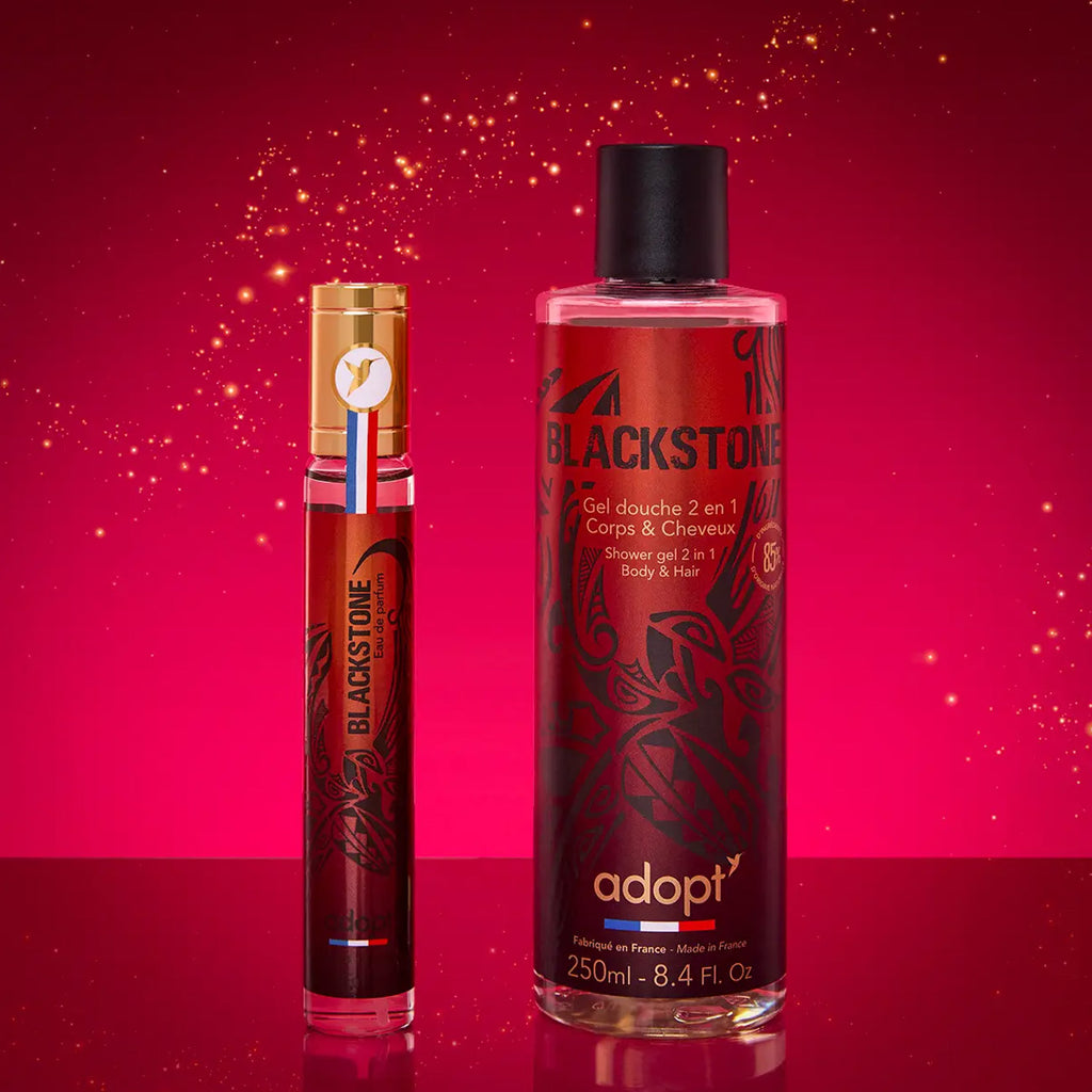 Explore the majestic power of the island of Tahiti with the Blackstone box and its already iconic duo celebrating the emblematic Fleur de Tiaré. To begin with, discover a great men's fragrance with captivating accords combining aromatic freshness, Fleur de Tiaré, tonka bean and burning woods. A woody, solar and sensual trail that enhances the wearer's natural charisma. Extend the experience with the matching Shower Gel, which cleanses your body while delicately perfuming it.