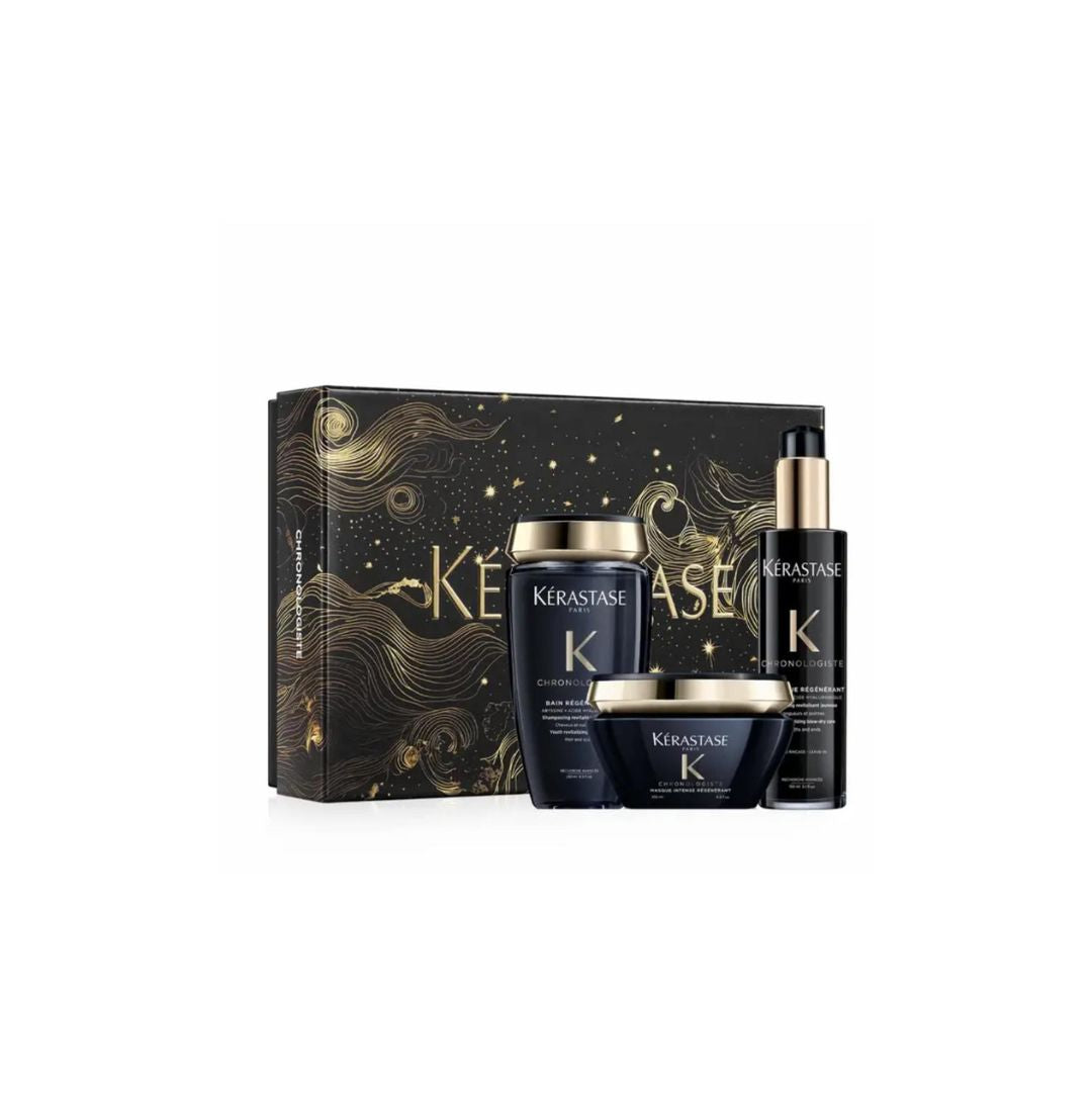 A Chronologiste routine that targets the six signs of ageing hair and scalp. A revitalising and invigorating shampoo to fight the signs of ageing scalp & hair. A luxury and revitalising hair masque for all hair types adding shine and softness. A blow dry cream for hair texture that is refined, cuticles are sealed & provides 24hr anti-frizz for smoothness. The range is enriched with Hyaluronic Acid, Vitamin E and Abysinne. For hair that looks and feels thicker, softer, stronger and shinier.