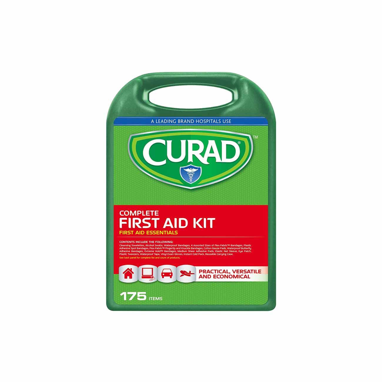 This 175-piece kit includes all of the first aid essentials. Its durable hard case keeps items organized. This economical kit is great for storing in your car, at the office or even in your boat.