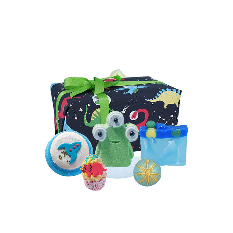 This Gift Pack contains:Rocket Man Bath Blaster,Close Encounters Bath Blaster,Dinosoak Bath Mallow,Starry Eyed Bath Creamer,Planet Peppermint Soap