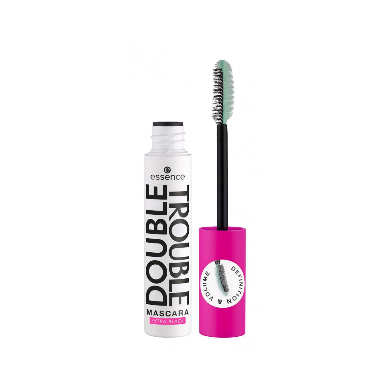 Double the volume, double the trouble! essence DOUBLE TROUBLE MASCARA is bold, daring, and has a double-sided brush for a lash look that’s got it all. The applicator has two sides, an elastomer brush and a fiber brush for extreme definition, curl, and length! Also available in a waterproof!