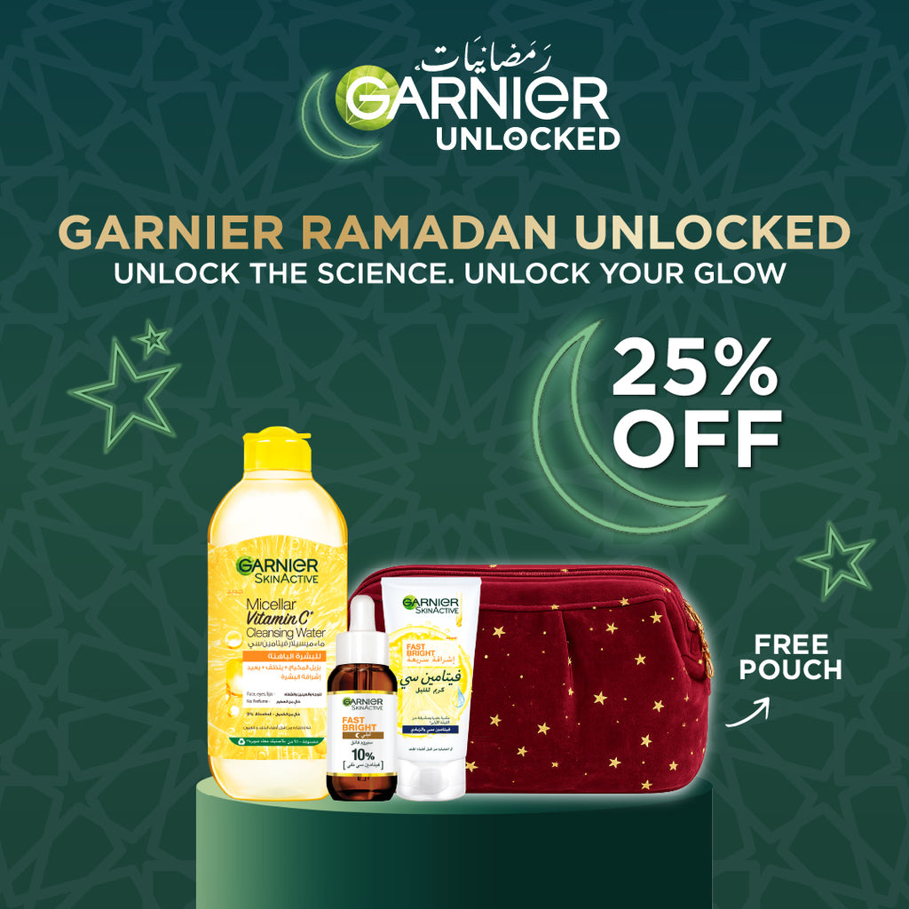This Lovely Bundle Contains: Garnier Skin Active Fast Bright Day Cream with 3x Vitamin C and Lemon, UVA/UVB Protection + Garnier Fast Bright 10% Pure Vitamin C Brightening Overnight Serum + Garnier Vitamin C Micellar Water Facial Brightening Cleanser and Makeup Remover.