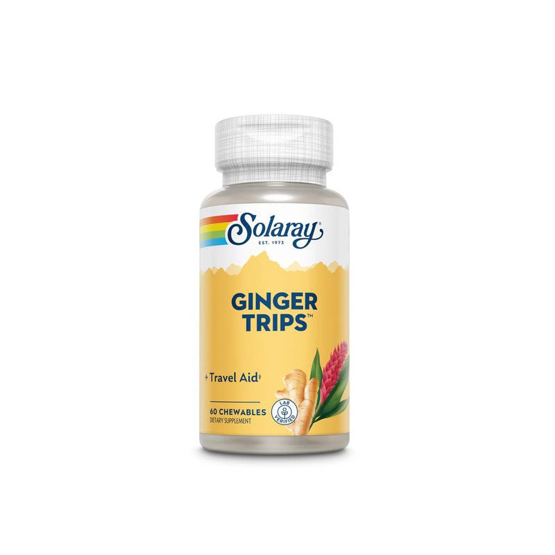 Live Brighter, keep comfortable, and enjoy travel again with Solaray Chewable Ginger Trips!