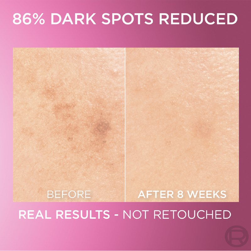 • In 1 week: Dark spots faded, and skin clarity improved for visibly more radiant skin.
