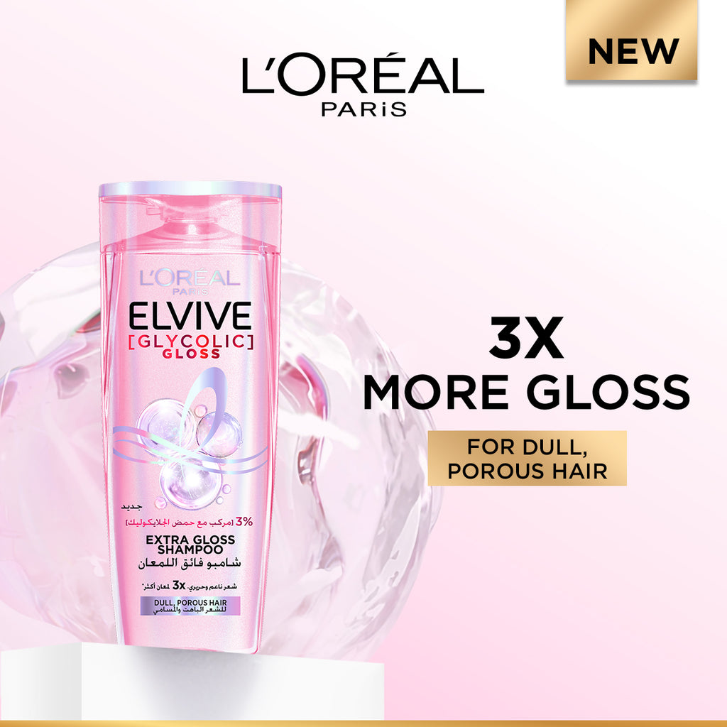 Experience instant hair transformation and revitalize your hair with the new L'Oréal Paris Elvive Extra Glycolic Gloss Shampoo. Get soft and shiny hair by using our 1st at-home hair glossing shampoo enriched with glycolic acid which improves the quality of dull, damaged hair. Having shiny hair means having healthy hair, because its smooth surface perfectly reflects light. But hair damage disrupts cuticles, which makes fibers rough, porous, and dull - preventing hair from reflecting light. Our new L’Oréal hair gloss shampoo for dry and frizzy hair is powered by 3% [GLYCOLIC ACID COMPLEX] which restores fiber from the inside to improve hair quality and activate lasting shine. This is a sulphate-free hair gloss treatment shampoo for damaged hair that takes care of each hair fiber, combating porosity by perfectly realigning cuticles. It ensures intense, long-lasting shine by deeply sealing the cuticles on each strand that lasts up to 6 hair washes*. This hair gloss shampoo is suitable for all hair types including curly, bleached & straight hair.