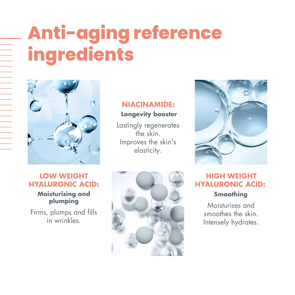With age everything accelerates. Ageing cells spread and the skin functions in slow motion. The Avène dermatological laboratories have created Hyaluron Activ B3 cream, concentrated in pure hyaluronic acid (0.2%: high and low molecular weight) and niacinamide (6%) to act on the cause and signs of ageing. The skin appears plumped, smoothed and radiant after the very first application. After 2 weeks, it is restored, feels firmer and wrinkles appear reduced**. Its velvety, delicately scented texture provides comfort to the skin. It is also a very good make-up base. Hyaluron Activ B3 Cell renewal cream Cream is an eco-conscious skincare product containing 92% ingredients of natural origin and comes in a 100% refillable glass jar.