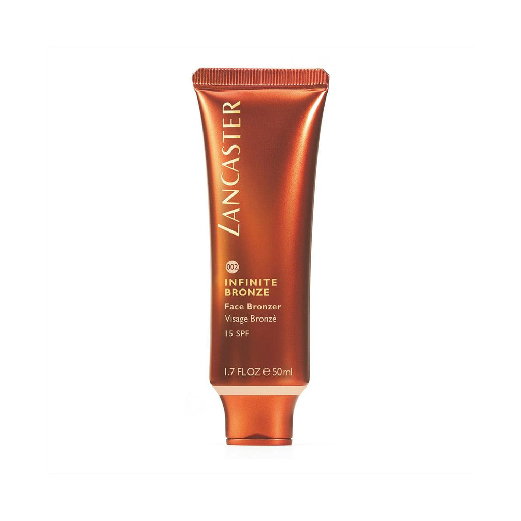 Every time is the right time to glow! Even out your complexion, enhance your tan or add a touch of sunny color in seconds with our Infinite Bronze Face Bronzer SPF15. The gently tinted, moisturizing cream-gel texture glides on easily and blends invisibly. Lancaster's skin-caring contains UVB and UVA filters and protects against free radicals. Use it alone or as a base for your makeup.