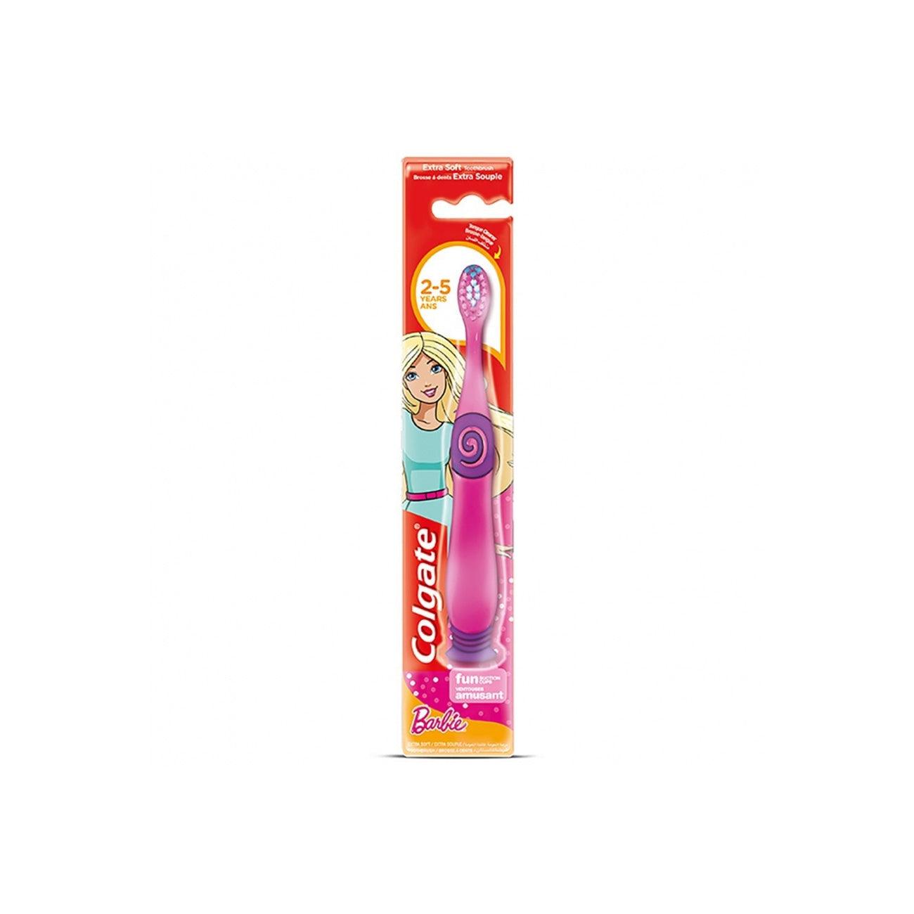 Get your kids excited to brush their teeth with the Colgate Kids Barbie Toothbrush - extra special care in a fun package, created especially for your little ones. Kids must brush their teeth at least 2 times a day and Colgate Kids Barbie Toothbrush is a fun way to encourage good oral care habits early on! The extra soft bristles, specially designed for kids, ensure gentle yet effective cleaning. This attractive Barbie themed toothbrush comes with a small head, which easily fits their small teeth. Ensures comfort brushing while the slim handle is easy to hold.
