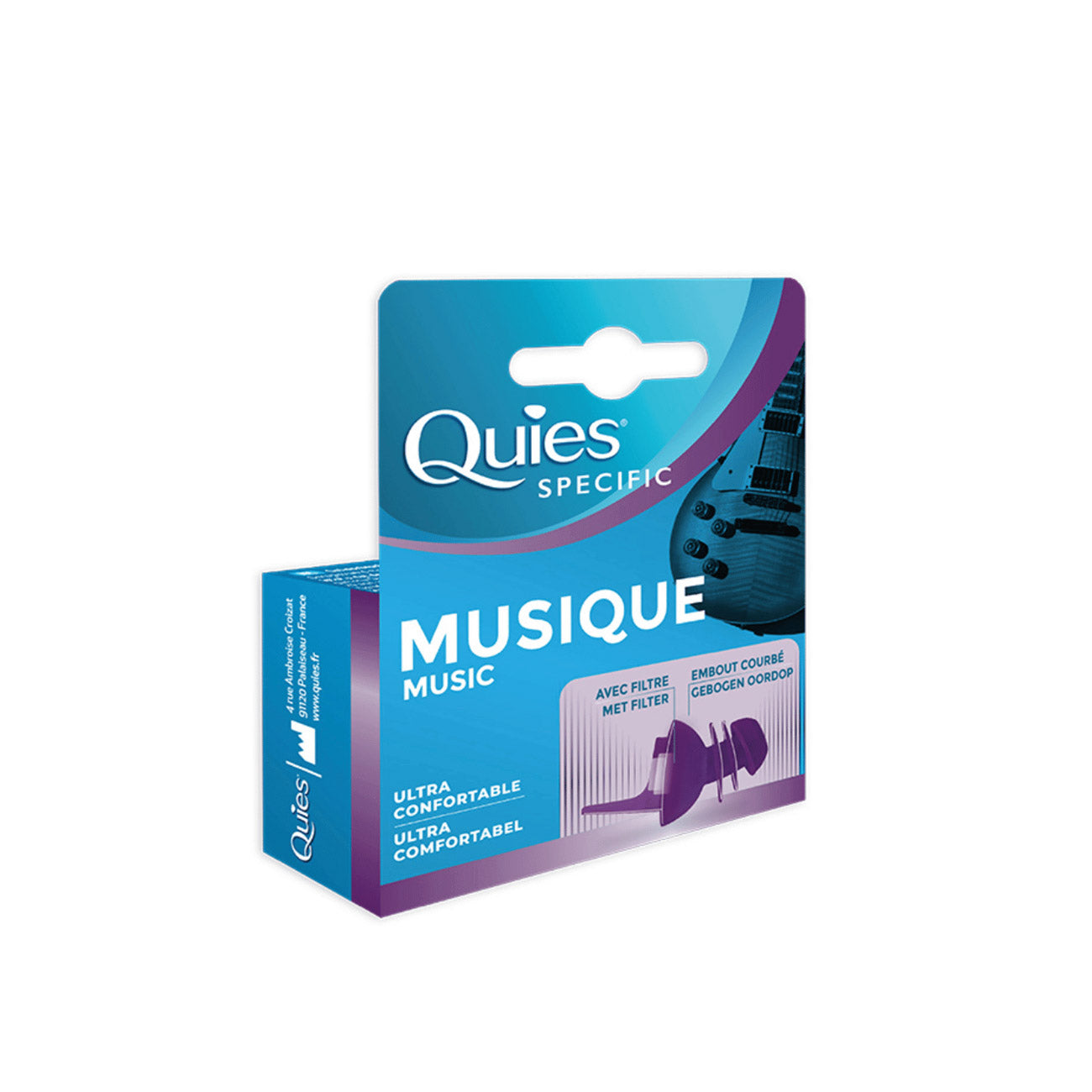 Quies Specific Music Hearing Protection 1 Pair are reusable protection whose curved tip perfectly matches the shape of the ear canal, thus ensuring ideal comfort and optimal acoustic sealing. It has a specific filter that limits noises linked to wind or engine noise, to make the journey pleasant while retaining the alert sounds essential for safety (horns, beeps, etc). Noise reduction: 18 dB. Made in France.