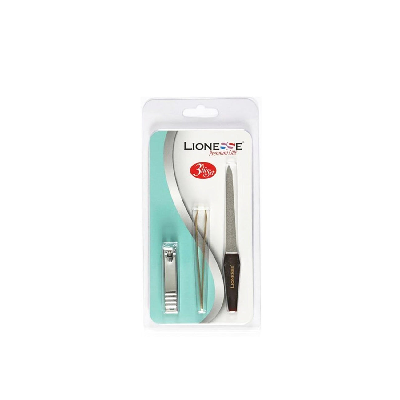 This set includes: (1) Nail clipper, (1) Nail file, (1) Eyebrow Tweezer