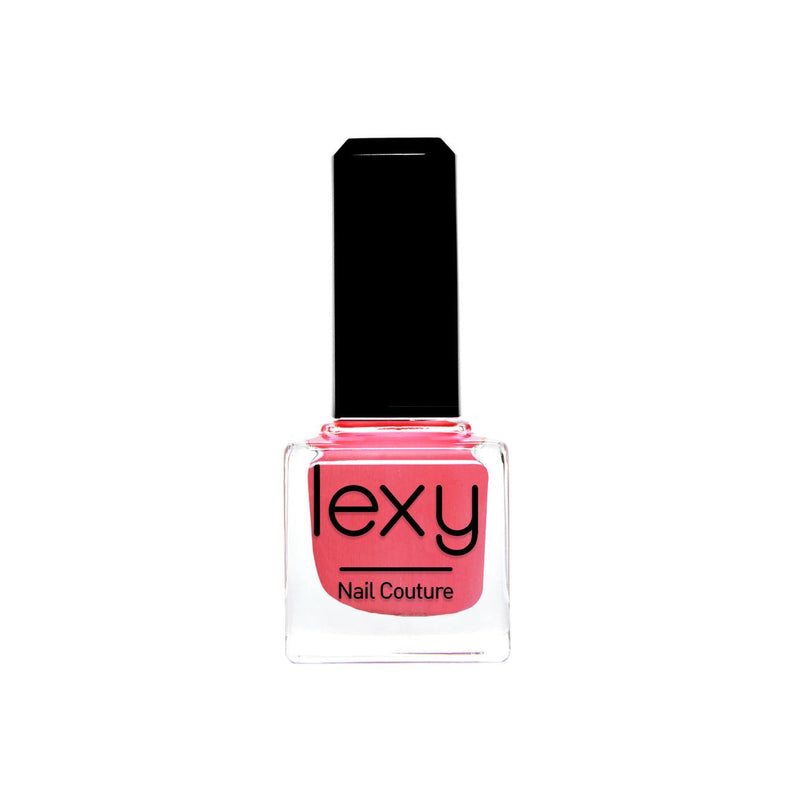 Lexy Nail Couture varnish comes in a 15 ml square-shaped glass bottle through which the nail polish color appears. It also has a black cap that closes securely.