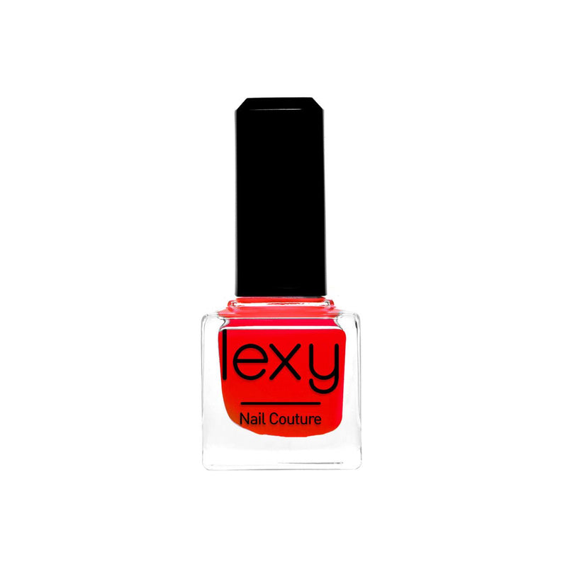 Lexy Nail Couture varnish comes in a 15 ml square-shaped glass bottle through which the nail polish color appears. It also has a black cap that closes securely.