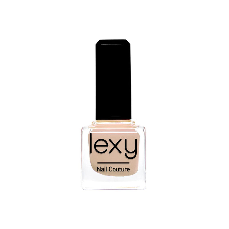Lexy Nail Couture varnish comes in a 15 ml square-shaped glass bottle through which the nail polish color appears. It also has a black cap that closes securely.