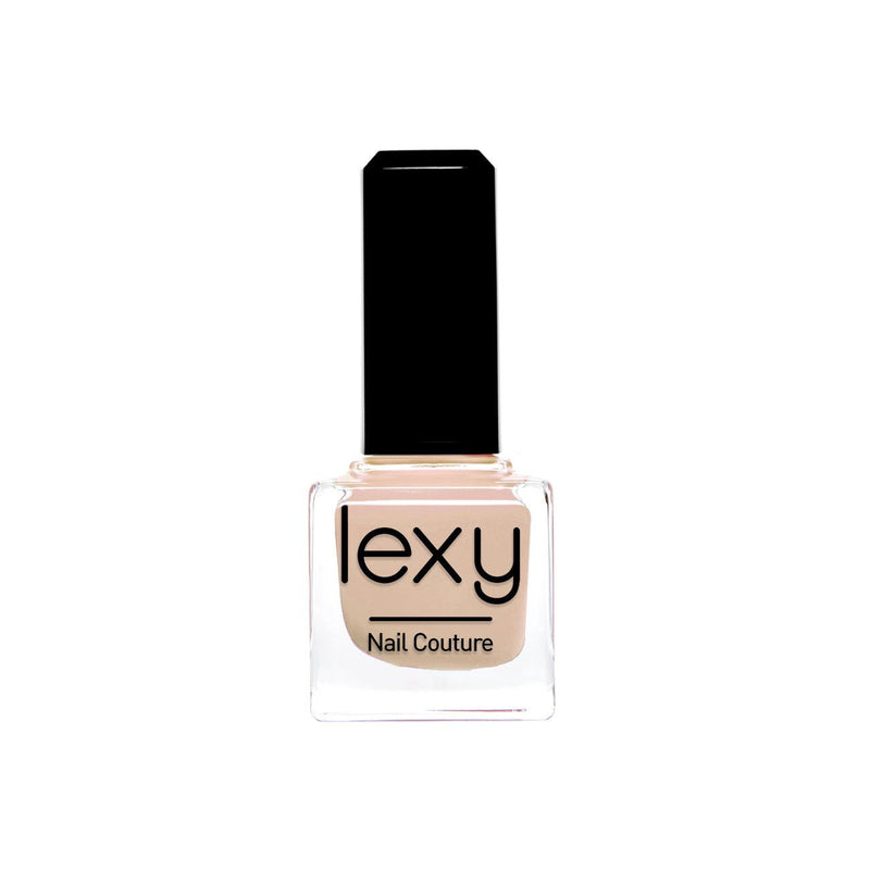 Lexy Nail Couture varnish comes in a 15 ml square-shaped glass bottle through which the nail polish color appears. It also has a black cap that closes securely.