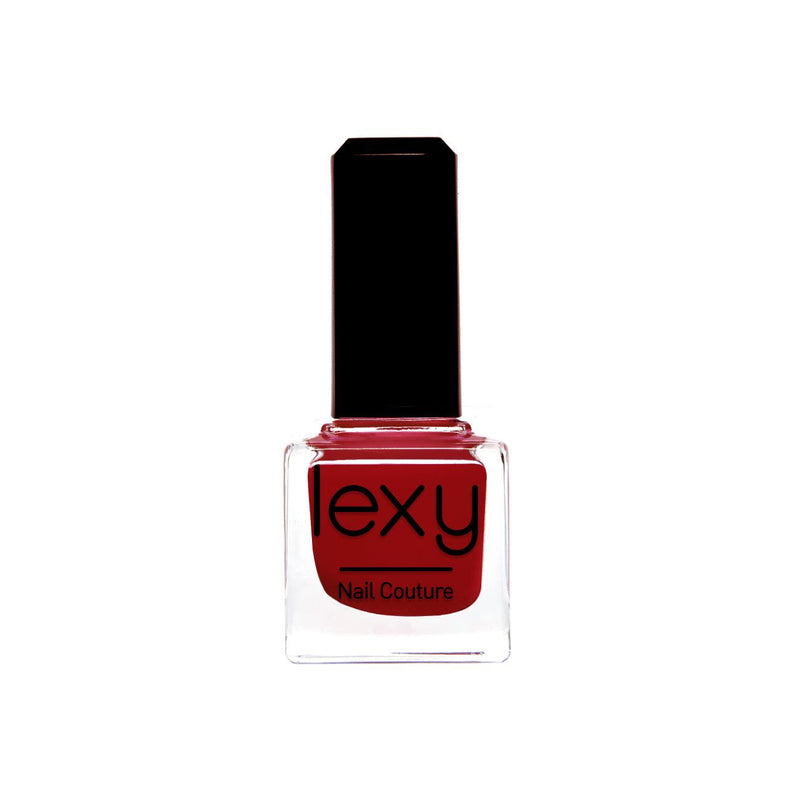 Lexy Nail Couture varnish comes in a 15 ml square-shaped glass bottle through which the nail polish color appears. It also has a black cap that closes securely.