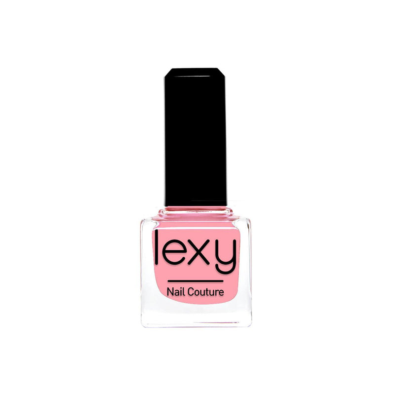 Lexy Nail Couture varnish comes in a 15 ml square-shaped glass bottle through which the nail polish color appears. It also has a black cap that closes securely.