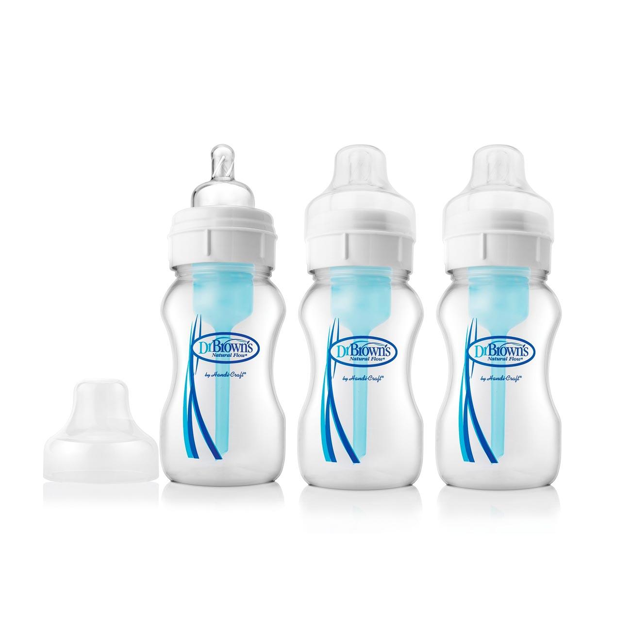 Natural Flow Wide Neck Bottle, Reduces Colic - Pack of 3