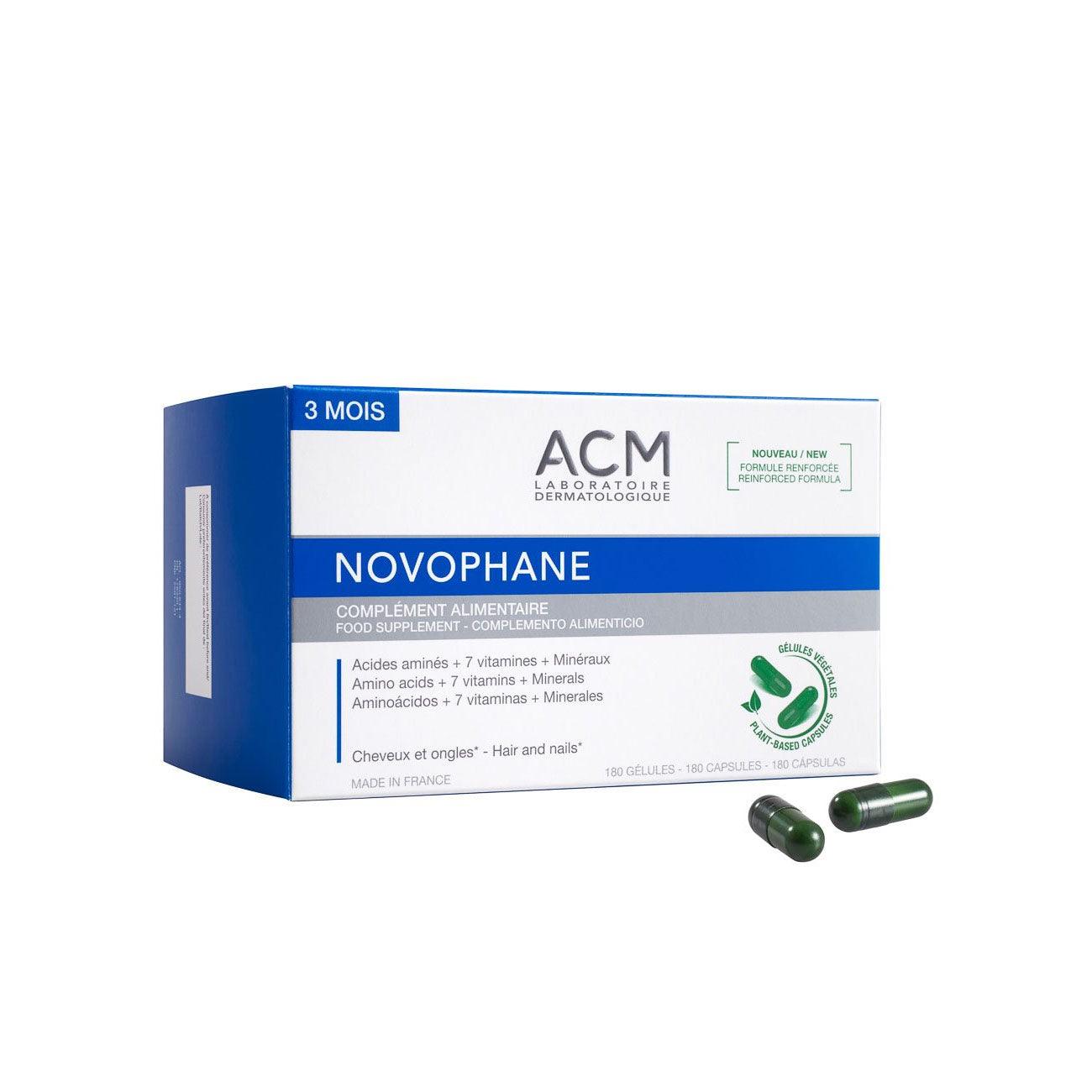 Transient or seasonal hair loss, deterioration in hair quality, fragile, soft, split, brittle nails, Novophane capsules reinforced formula contains a very complete formula with amino acids, vitamins, minerals and vegetable silicon to maintain hair and nails healthy and make them more resilient.