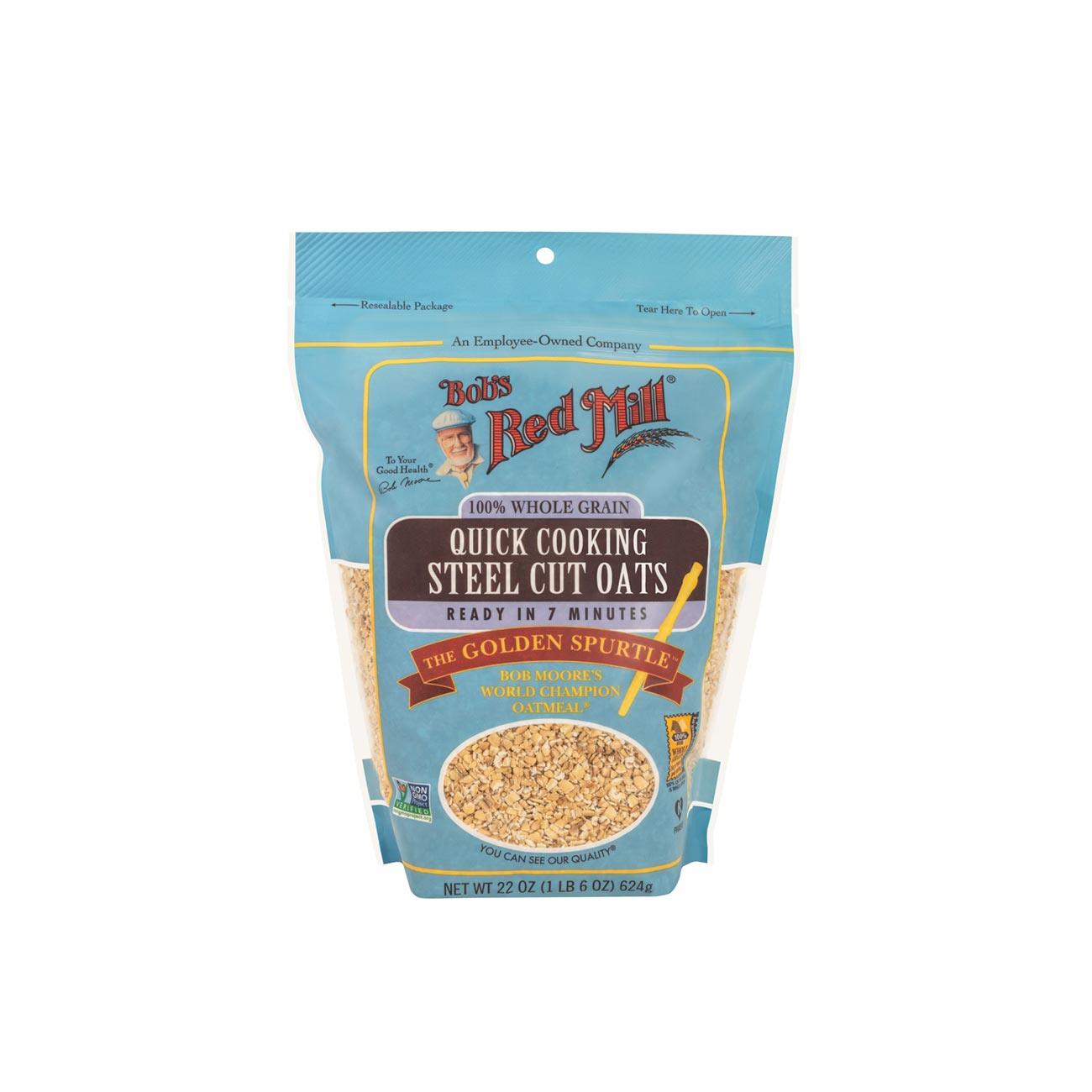 Organic Quick Cooking Steel Cut Oats are simply whole, organic oat groats that have been cut into neat little pieces on a specialized rotary granulator mill. We use whole grain oats that have been lightly toasted to create our hearty steel cut oats. Also known as Irish oats or pinhead oats, steel cut oats create a chewy, full-bodied hot cereal. Steel Cut Oats have always been a universal customer favorite at Bob's Red Mill. Their robust oat flavor, texture and ease of preparation make them a perfect breakfast.
