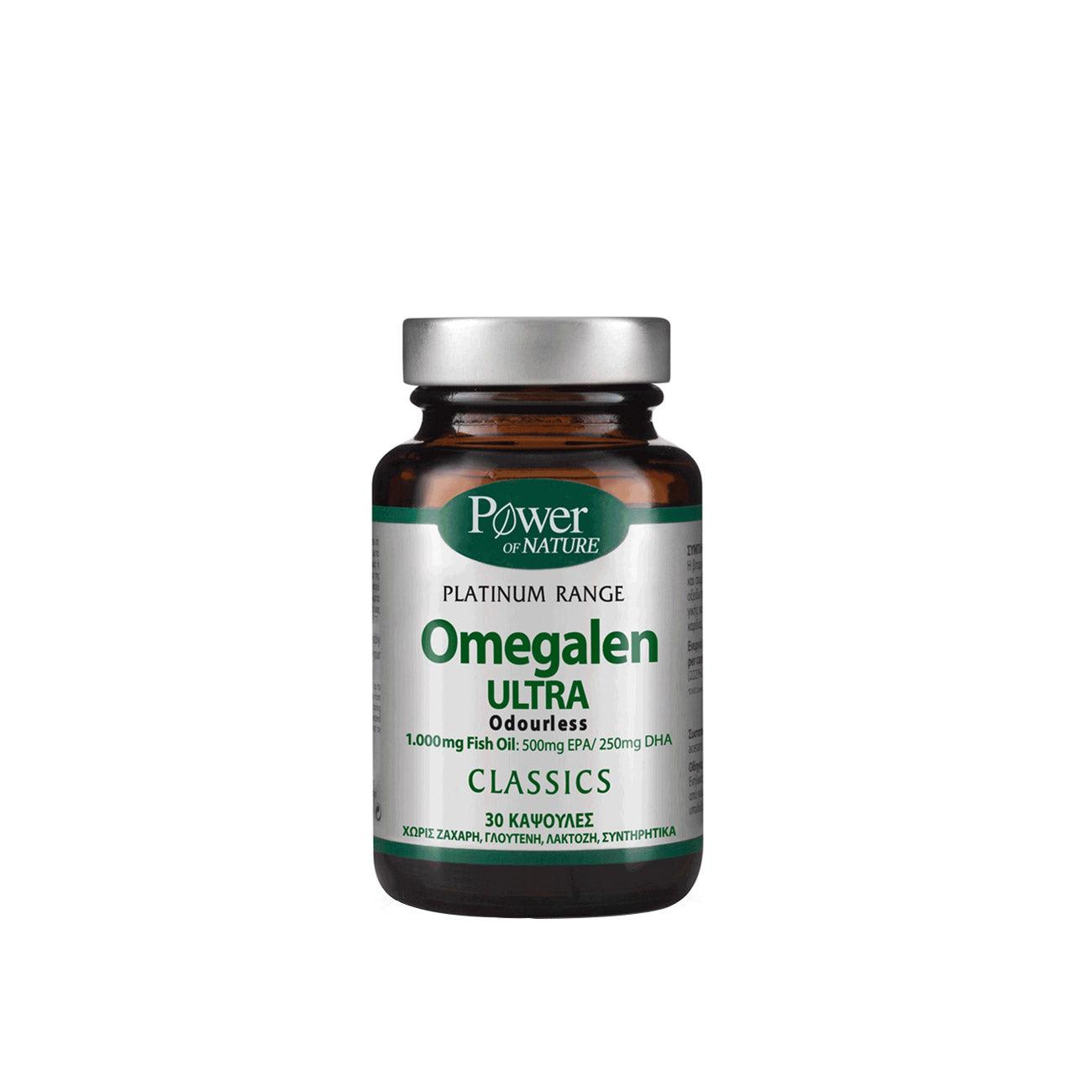 Omegalen ULTRA of the Classics Range contains capsules with a special film coating for maximum absorption without any after taste. Omegalen ULTRA fish oil is obtained with molecular distillation and cold compression, it is rich in polyunsaturated fatty acids EPA / DHA. It is combined with tocopherols for natural antioxidant protection.