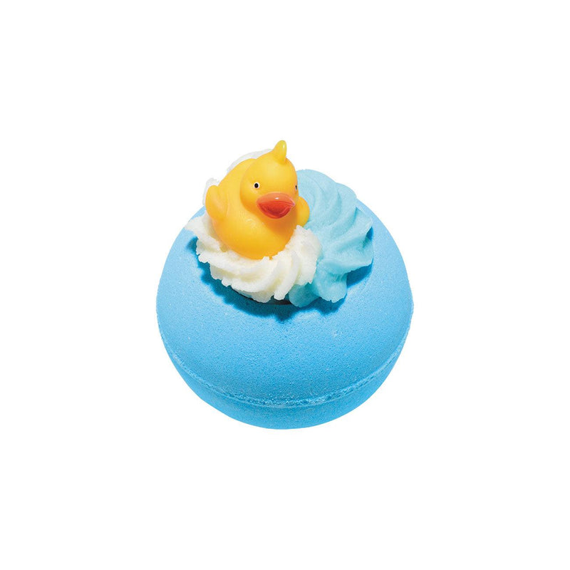 Stop quacking around! Indulge in the rich, moisturising warmth of the cocoa and shea butter swirl, as it slowly melts away and the Blaster fizzes and swims around the tub. With scents of fresh cotton and lavender pure essential oils, to leave you waddling your way to bed + a little toy companion!