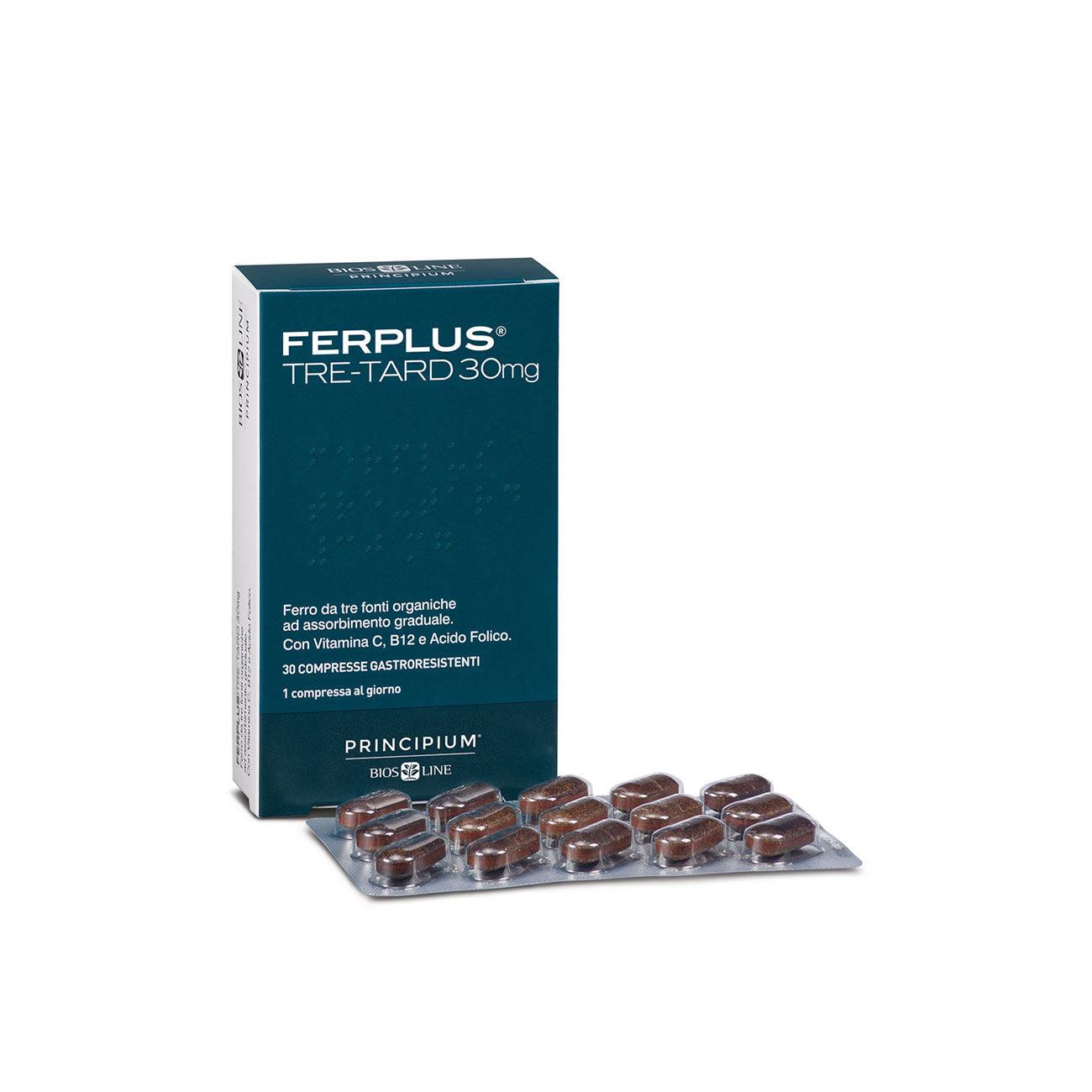 FerPlus Tre-Tard 30mg is a high-dose iron supplement in gastro-resistant tablets with gradual release.
