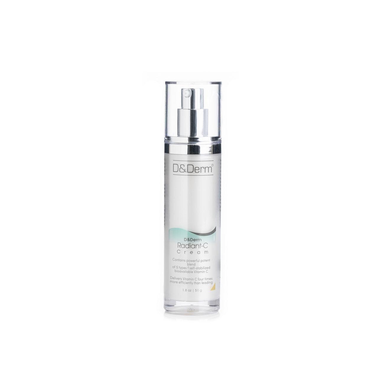D&Derm Radiant-C Cream a powerful anti-aging treatment contains a potent blend of 5 types of self-stabilized, bioavailable Vitamin C 10% in a rich cream base to nourish, hydrate and protect skin as it fights and reverses the signs of aging. This potent formula delivers Vitamin C four times more efficiently than Ascorbic Acid formulas, for more efficacious treatment results. Clinical testing of efficacy has shown an 80% reduction in melanin synthesis, as skin appeared dramatically brighter.
