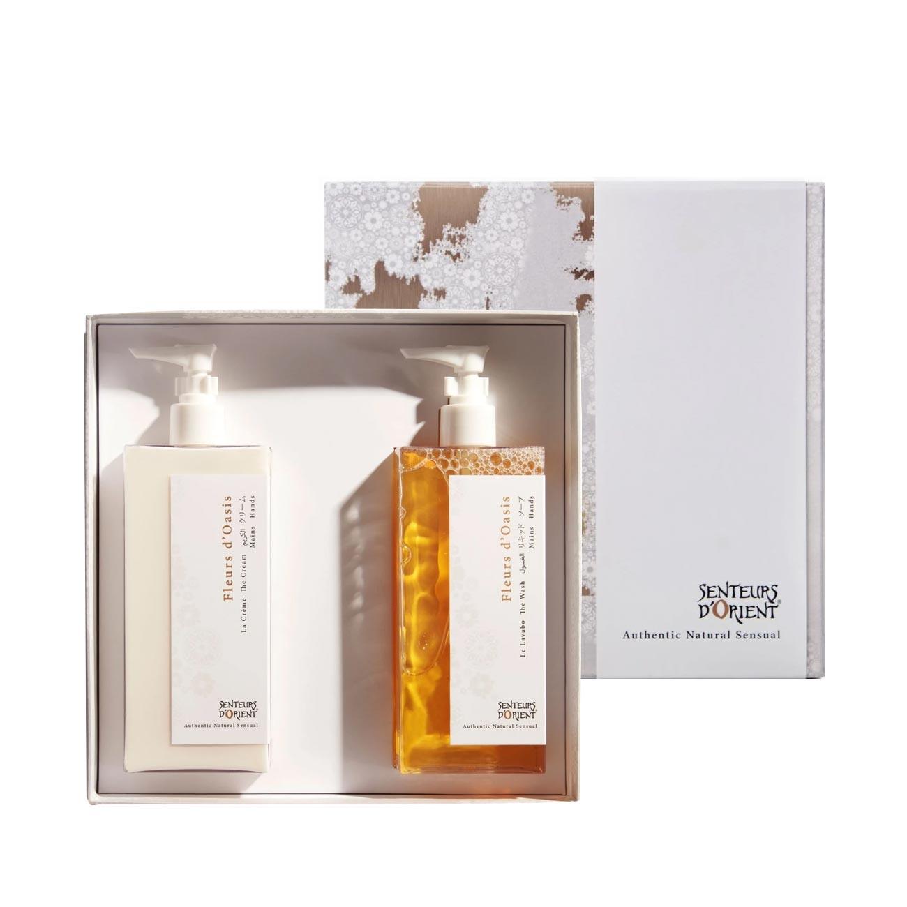 Our best-sellers together in time for the holidays! Fleurs d'Oasis The Wash gently cleanses hands and Fleurs d'Oasis The Cream beautifully nourishes the skin for soft, delicate hands. The Wash and The Cream are natural formulas, paraben and silicon-free, made with vegetal proteins, pure essential oils and rich in hydrating plant oils.