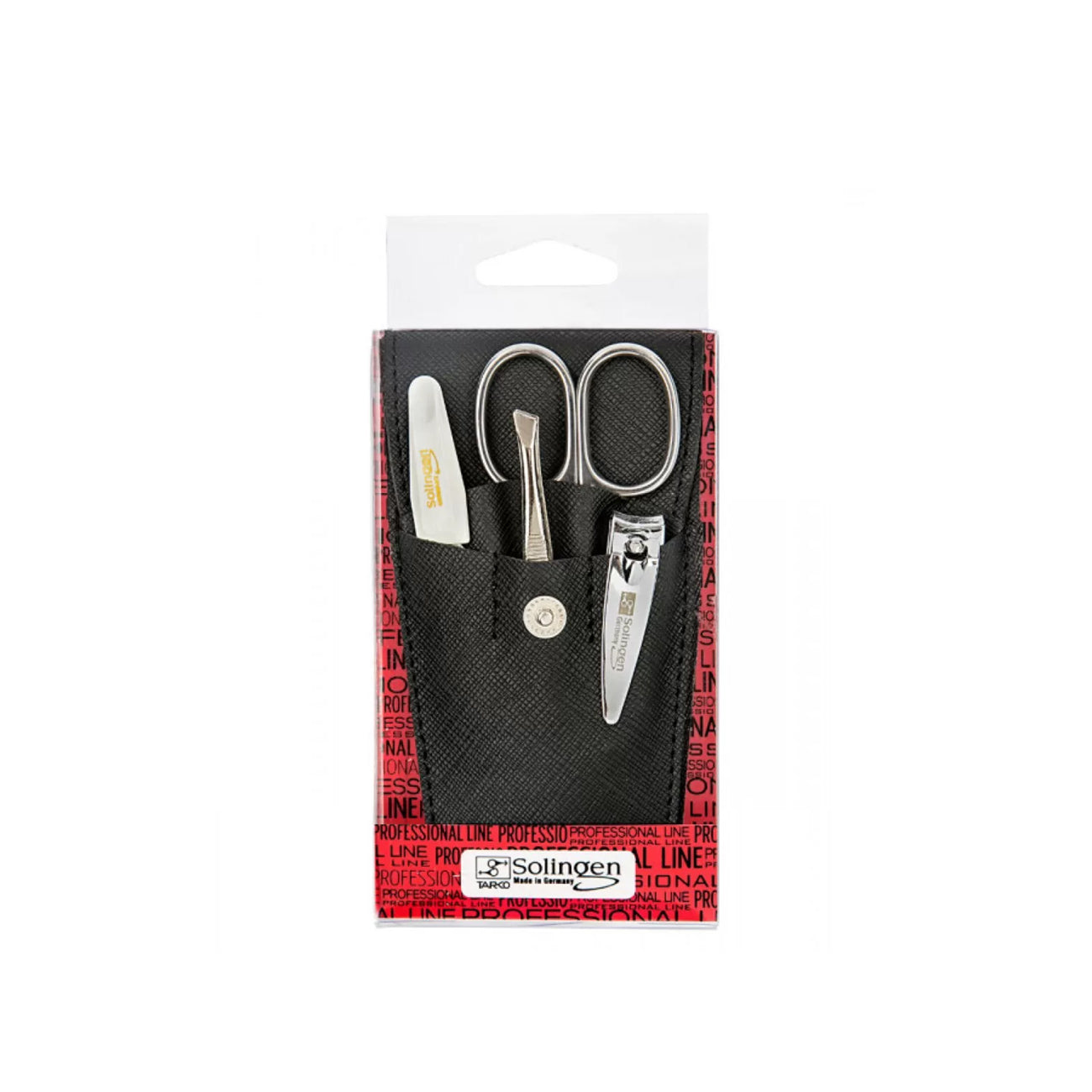 This travel kit includes: (1) Nail clipper, (1) Nail file, (1) Eyebrow Tweezer, (1) Multi-purpose scissors