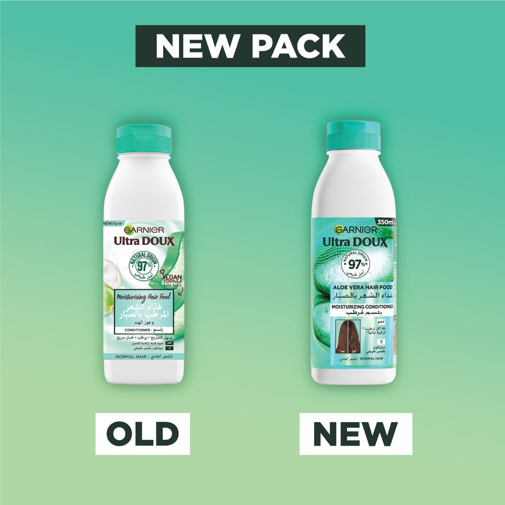Garnier Ultra Doux Vegan Hair Food, our new way to nourish hungry hair. With 97% Natural Origin and 100% Vegan Blends, it is enriched with Super Food Extracts for Super Hair. This Ultimate blend of Moisturizing Aloe Vera & Coconut is a nourishing Conditioner for Normal Hair.